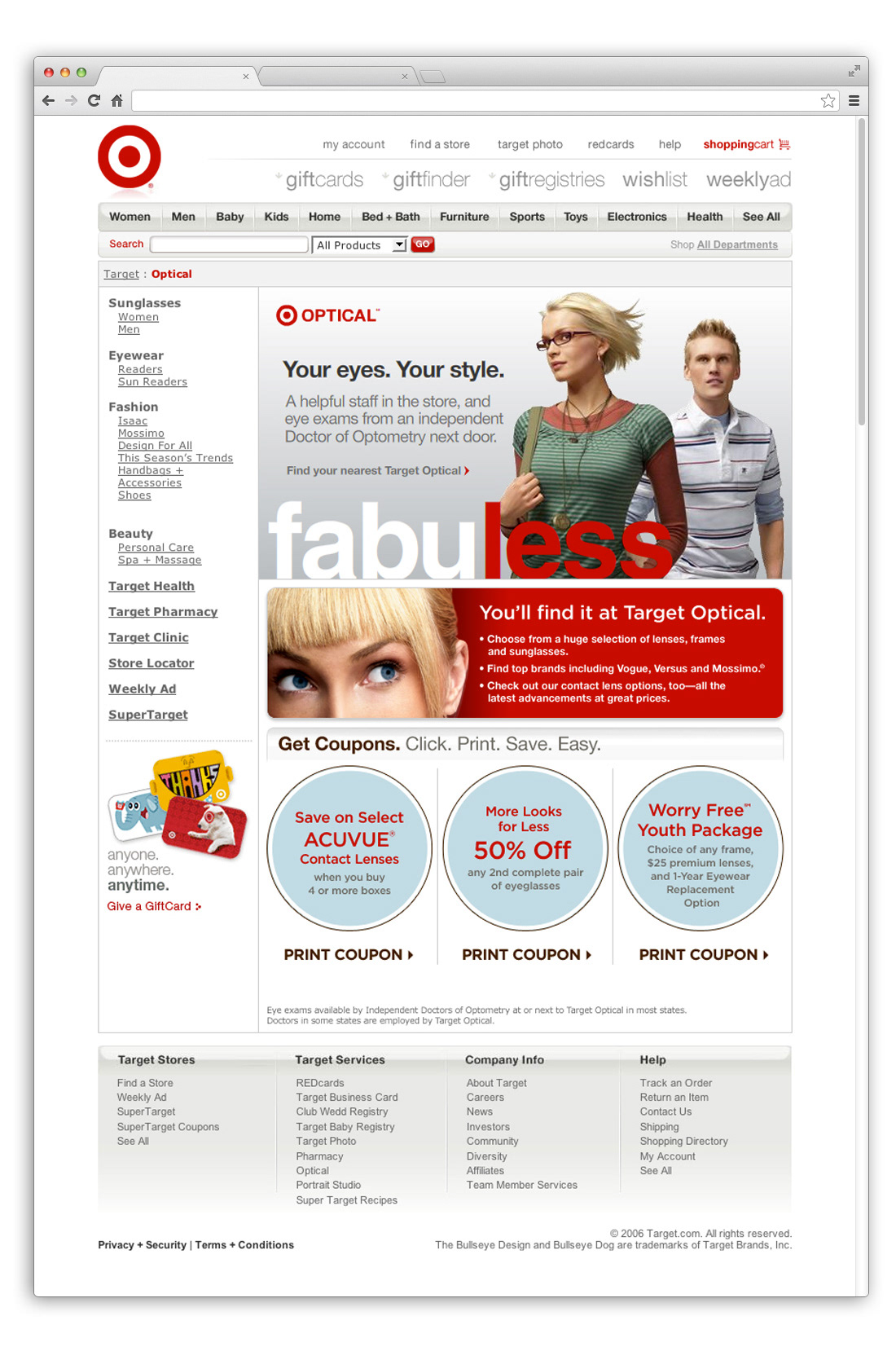 This was the Target Optical web experience which I designed. The talent was photographed in New York and provided to me by the Art Director.